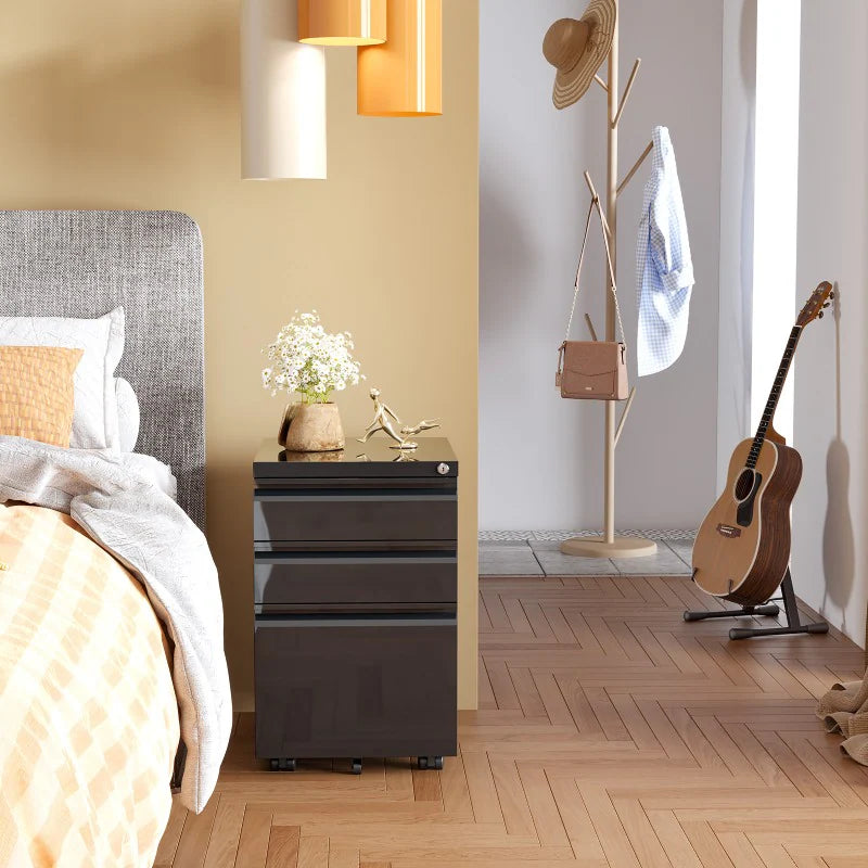 A mobile pedestal with drawers improves document organization and efficiency. With three drawers, you can store all your essentials neatly—suitable for Letter, A4, F4, and Legal sizes.